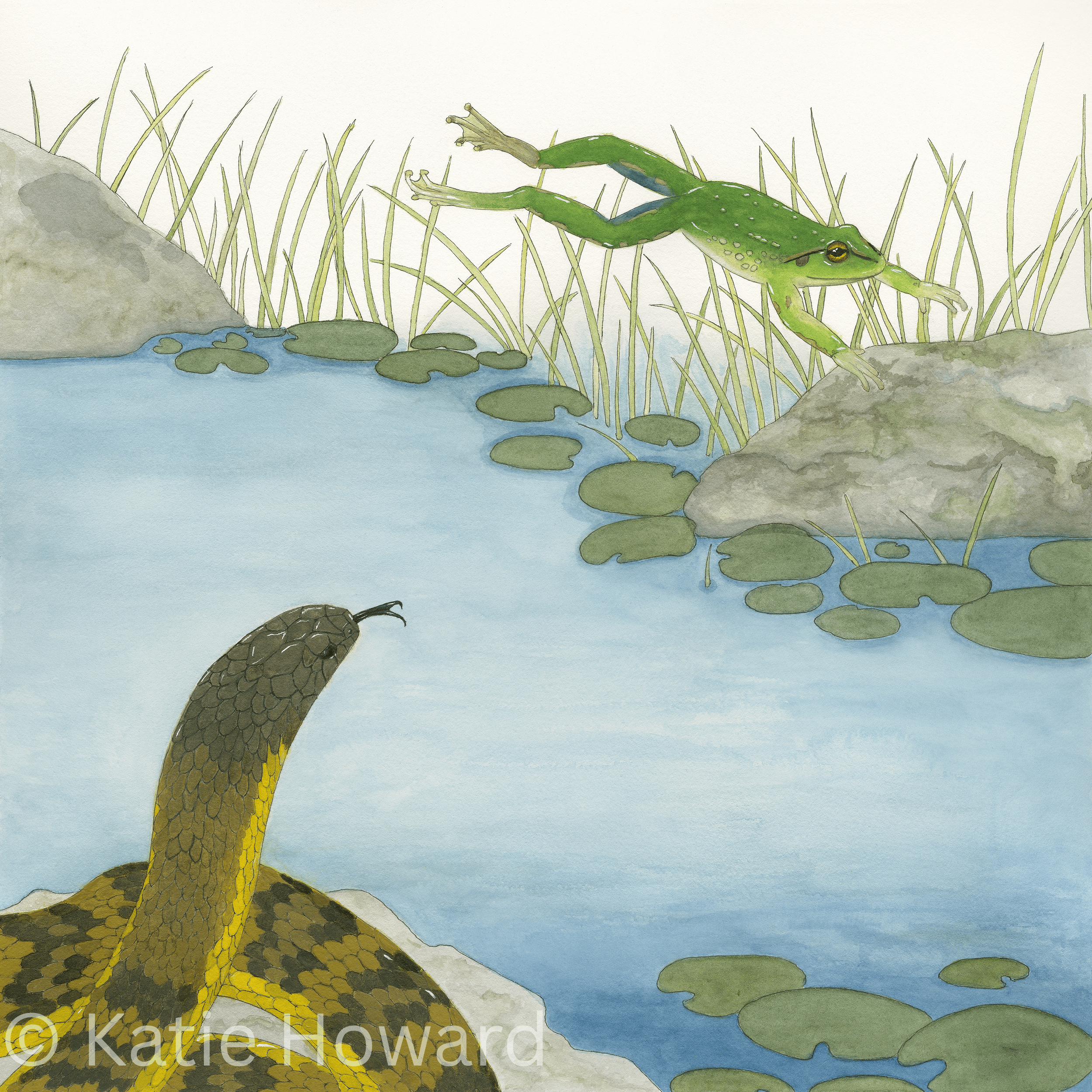 Wading for Frogs - 16 x 16 inch SOLD